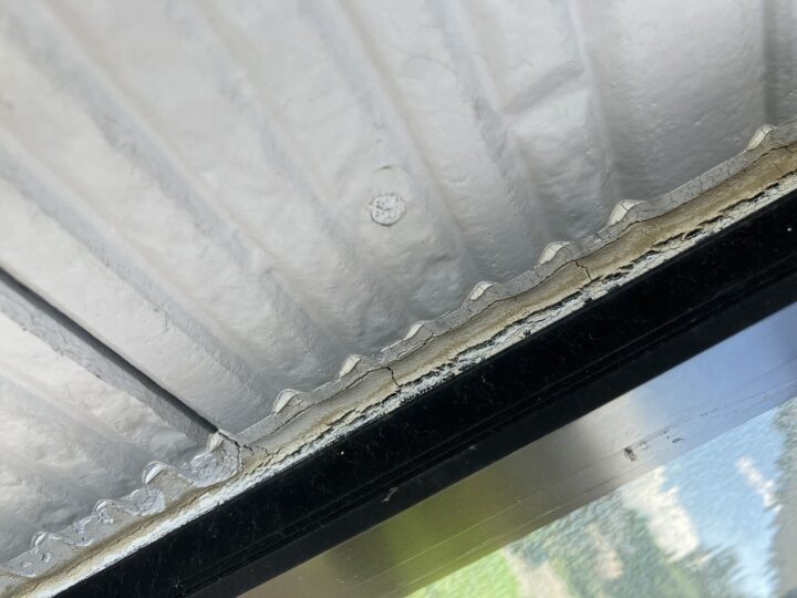 板金接合部のコーキングが切れてしまっている状態です。