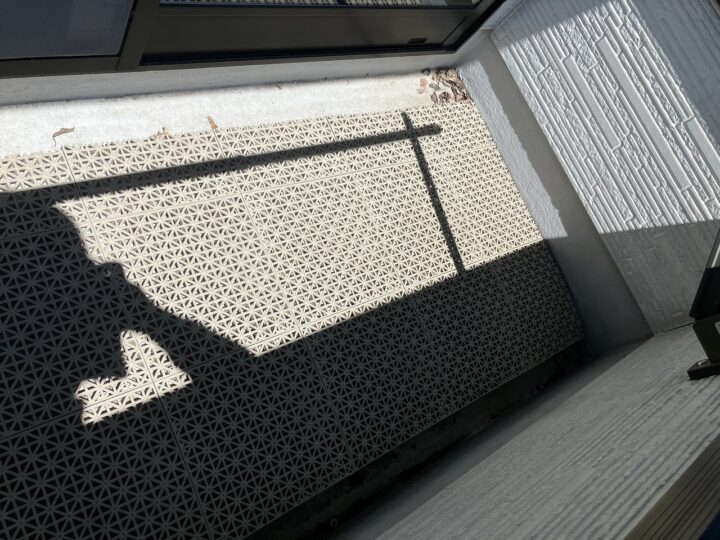 既存バルコニーはFRPです。劣化が進んでおり、今回のタイミングで防水専用塗料を施工することを推奨いたします。