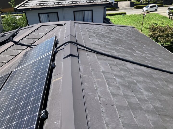 既存屋根材はスレート屋根です。石質の薄い板を使用しているため、劣化や反りがしやすい材料です。