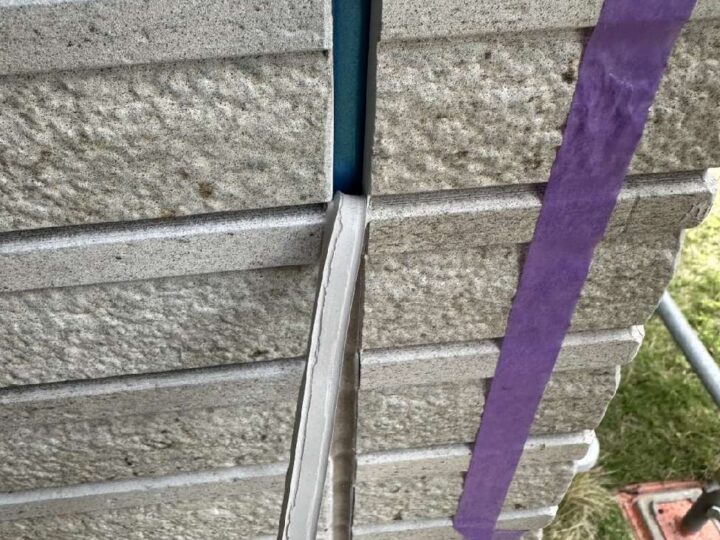 シーリングの目地部分が劣化した為、外壁側面から含水しやすくなっており、表面が剥がれ始めております。