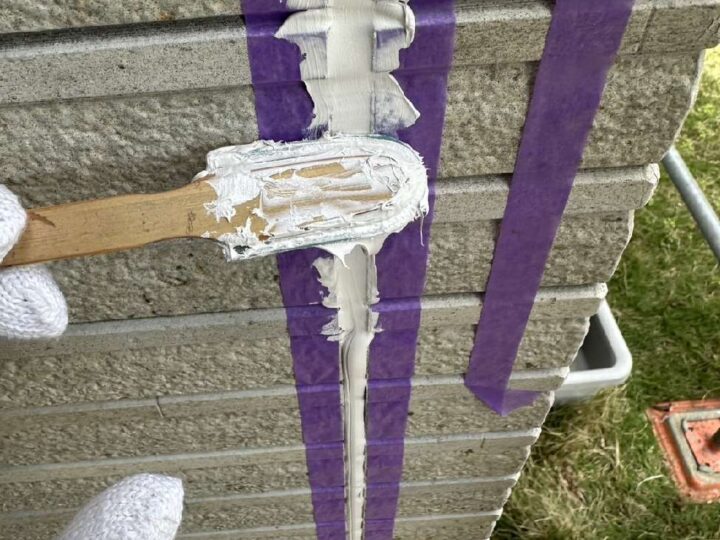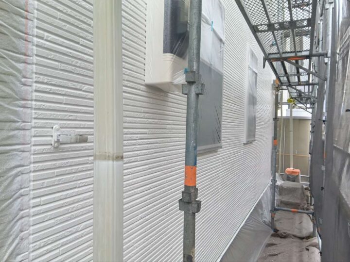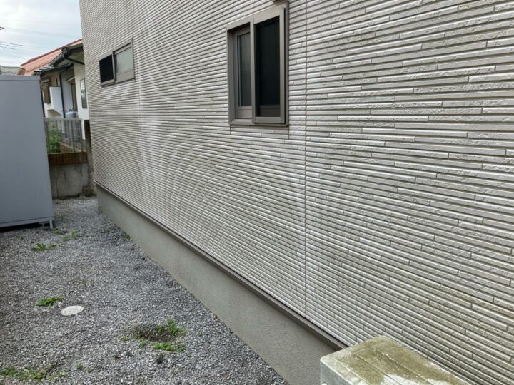 既存外壁材は窯業サイディングです。セメント・石膏などを主成分にし、一般住宅でも最も使用されている外壁材で基材に吸水性があるのが特徴です。