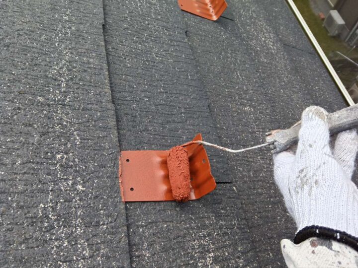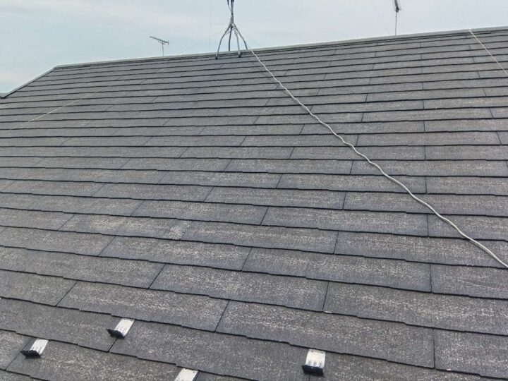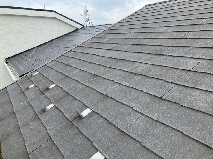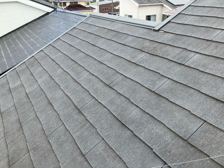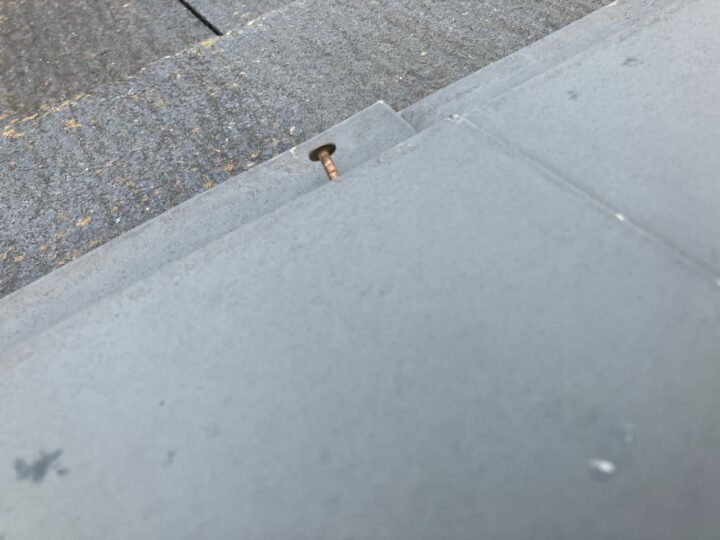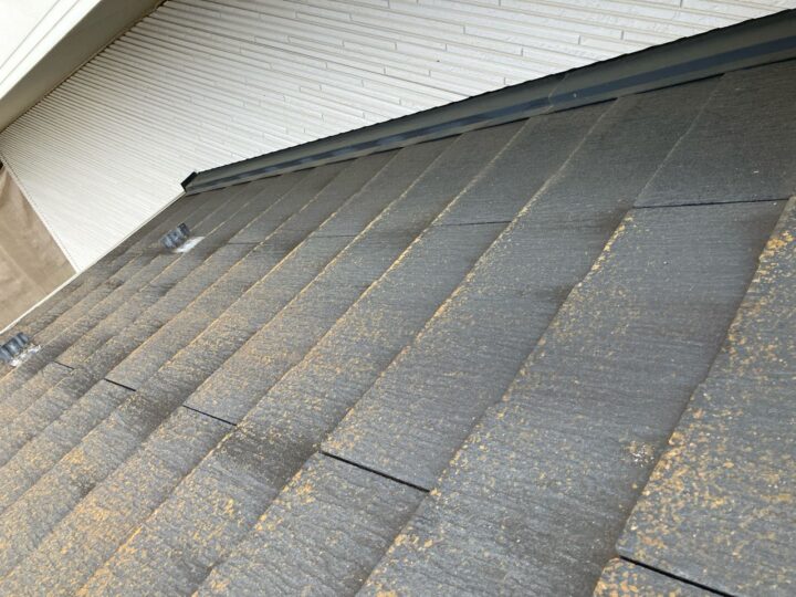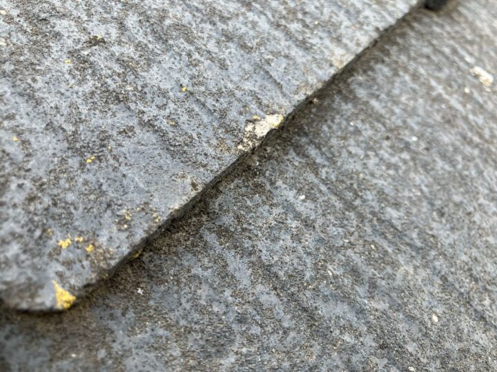 既存屋根材はスレート屋根です。石質の薄い板を使用しているため、劣化や反りがしやすい材料です。