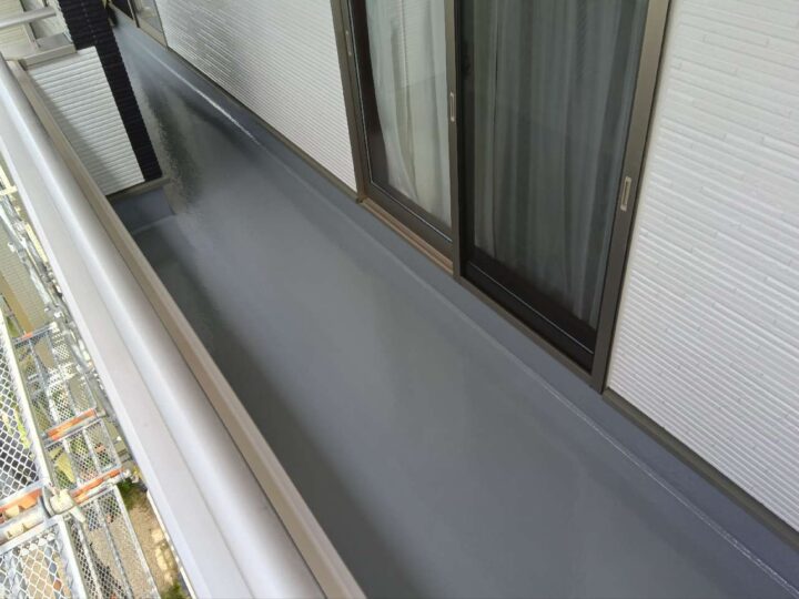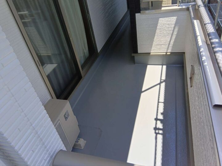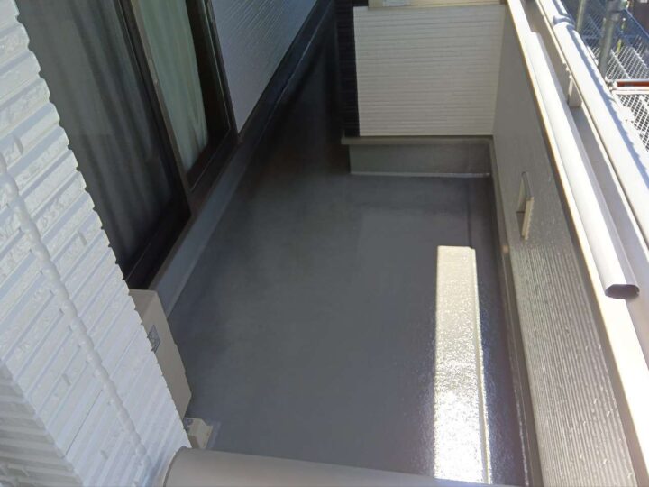 既存バルコニーはFRPです。劣化が進んでおり、今回のタイミングで防水専用塗料を施工することを推奨いたします。