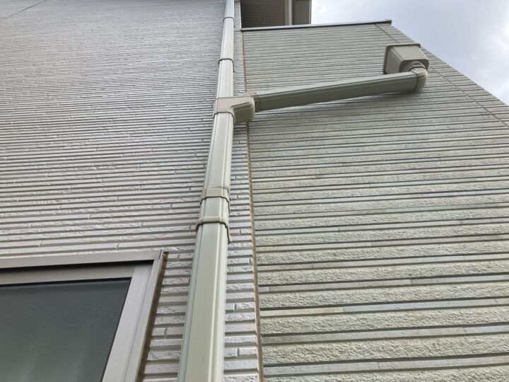雨樋の褪色が見受けられます。今回、外壁と併せて塗装をすることで素材を長持ちさせることができます。