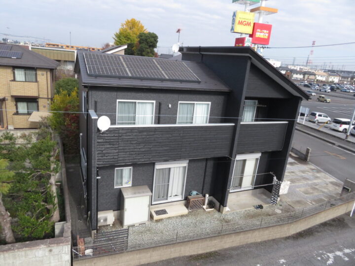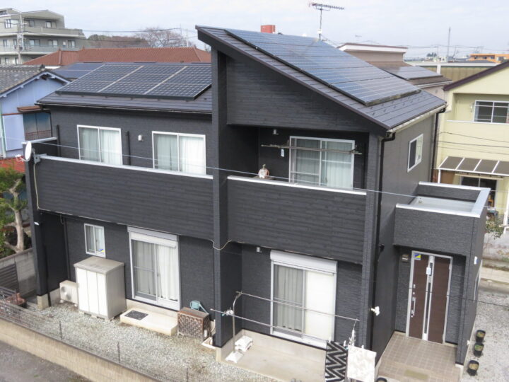 | 使用材料 | 屋根塗装:アステックペイント スーパーシャネツサーモF カラー :9114 キャビアブラウン 外壁塗装:ジャパンカーボライン スーパームキコート カラー:8079 チャコール |