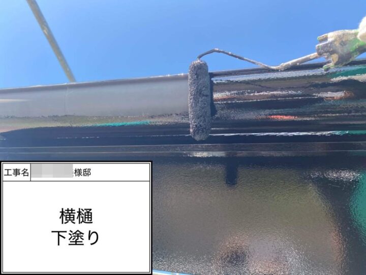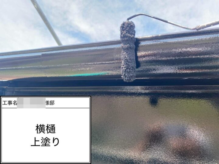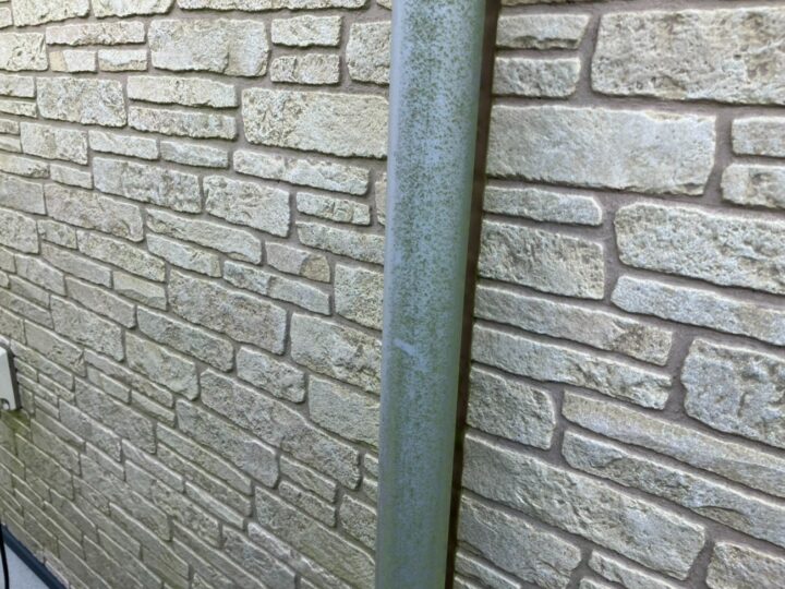 雨樋の褪色が見受けられます。今回、外壁と併せて塗装をすることで素材を長持ちさせることができます。 -