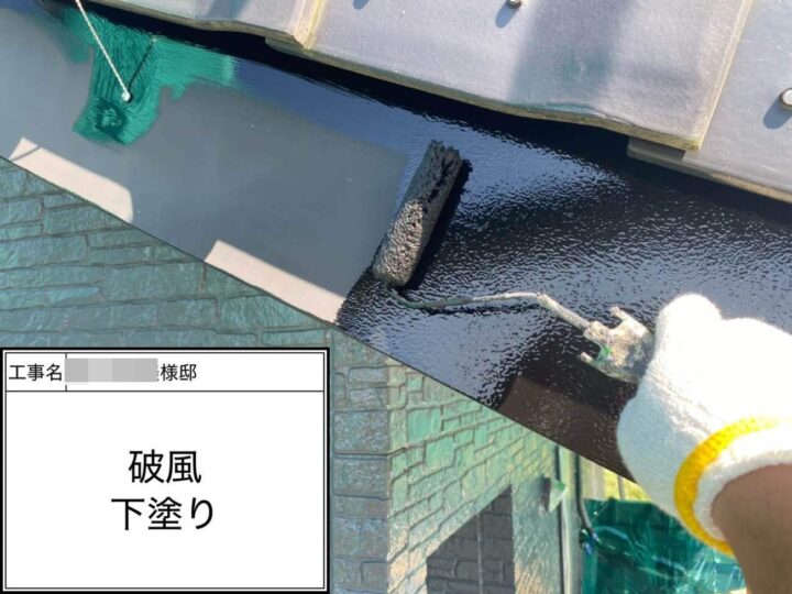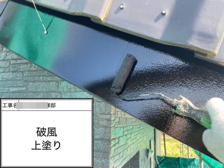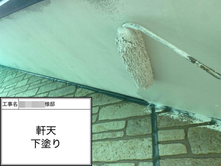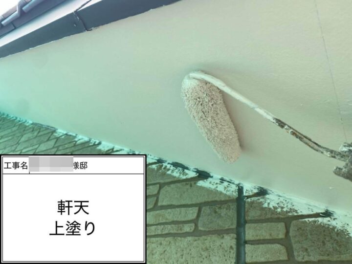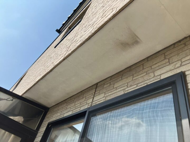 軒天部分にカビが見受けられます。今回、防カビ成分の入った軒天専用塗料を塗布することで素材を長持ちさせることができます。 -