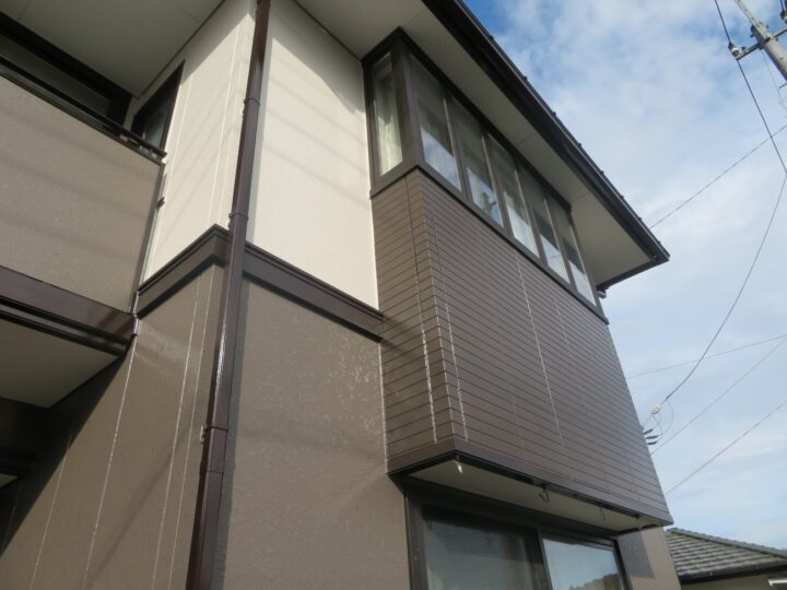 外壁材は積水ハウス専用のSパネル吹付材ですので、熱膨張するリスクが高いので使用する塗料をしっかりと選定する必要がございます。 -