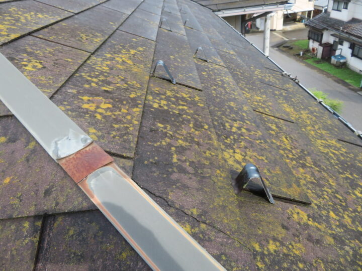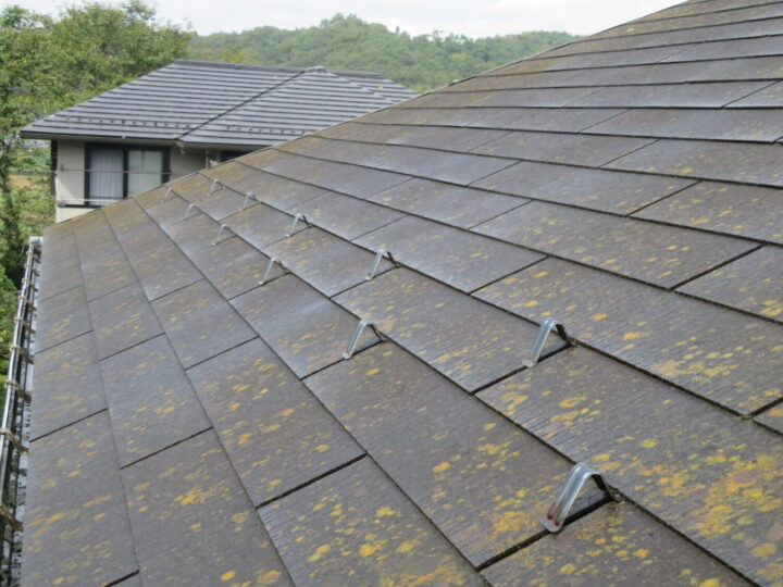 スレートのひび割れが確認出来ましたが、築年数を考えると割れが非常に少なく、強度の高いスレート材になります。 -
