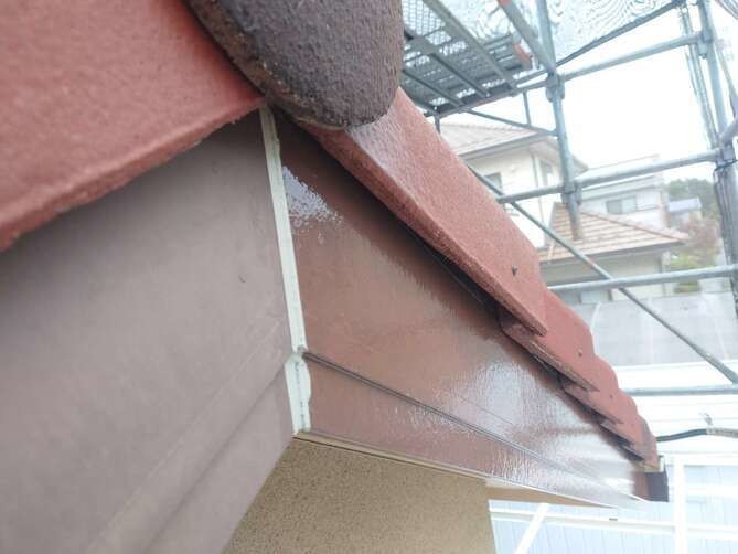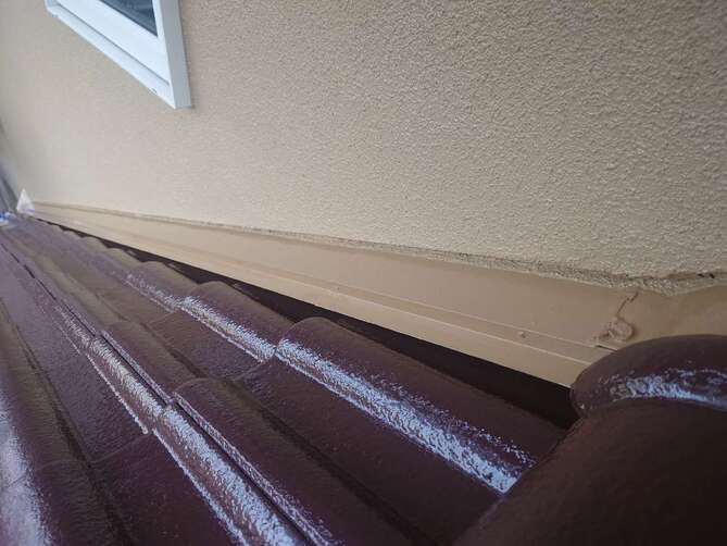 雨押えの褪色が見受けられます。今回、屋根と併せて塗装をすることで、お家を長持ちさせることができます。 -