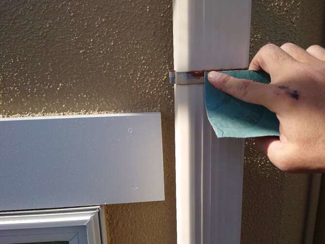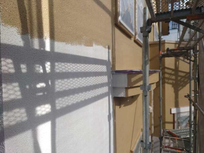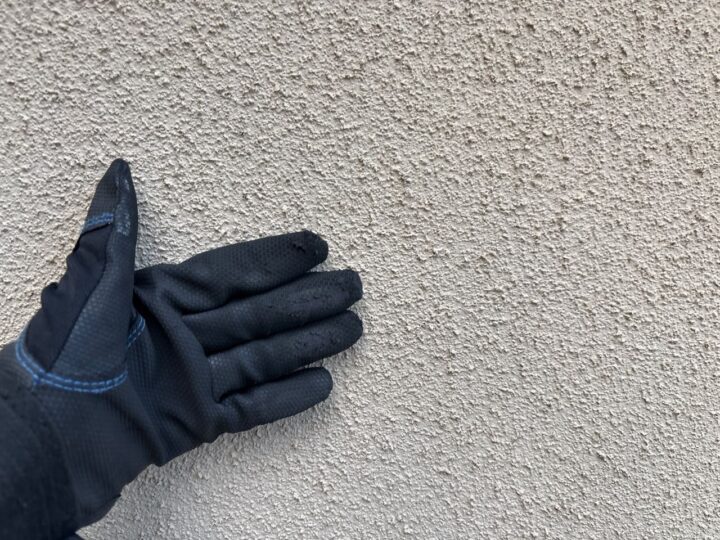 紫外線による影響から、塗料の劣化を示すチョーキングが発生しております。しっかりと高圧洗浄で汚れを落とし、塗装をする必要があります。 -