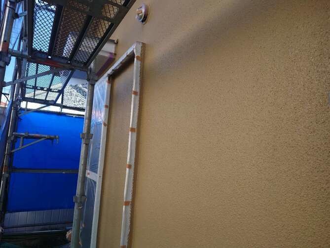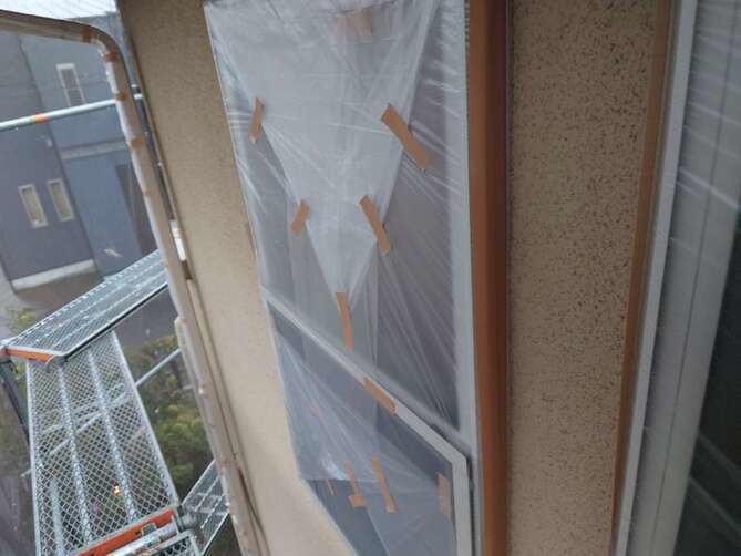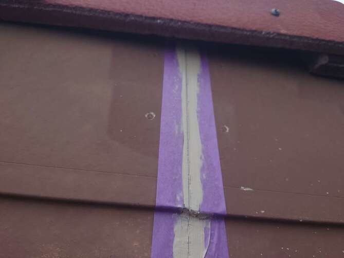 マスキングテープを貼り、シーリングの充填を行っています。 -