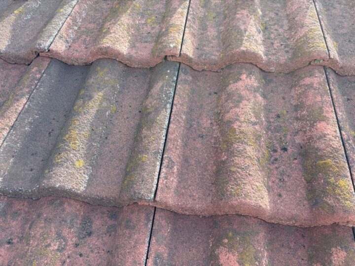 紫外線による劣化がひどく褪色が見られ、また一部コケが発生している箇所がございます。 -
