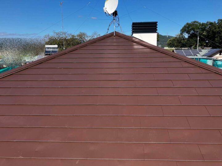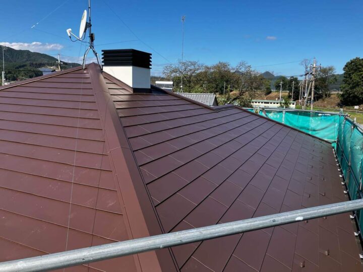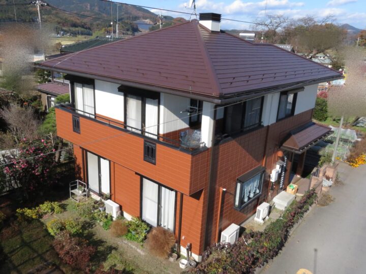 | 使用材料 | 屋根材:INAGAKI ICひらぶきヒランビー220 カラー:セピア 外壁塗装:ジャパンカーボライン スーパームキコート カラー:8070 テラコッタ/8091 ブロークンホワイト |