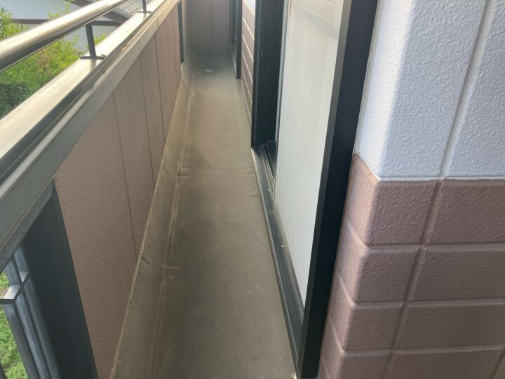 既存バルコニーは塩ビシートです。劣化が著しく進行しているため塗装工事が難しく、バルコニーに関してやりかえを推奨いたします。