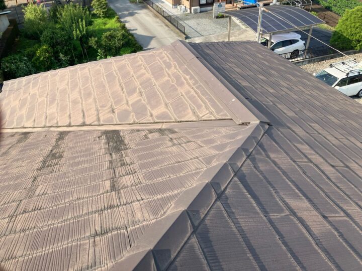 谷の褪色が見受けられます。今回、屋根と併せて塗装することを推奨します。 -