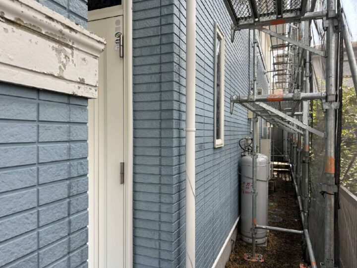 既存外壁材は窯業サイディングです。セメント・石膏などを主成分にし、一般住宅でも最も使用されている外壁材で基材に吸水性があるのが特徴です。 -