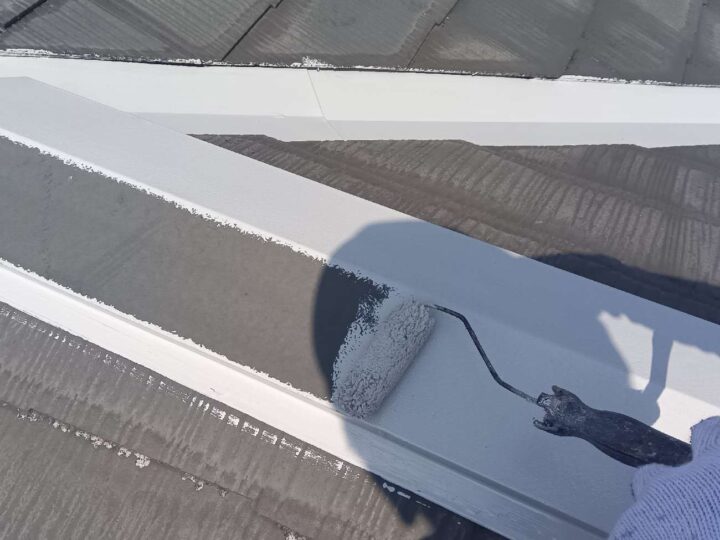 谷の褪色が見受けられます。今回、屋根と併せて塗装することを推奨します。 -