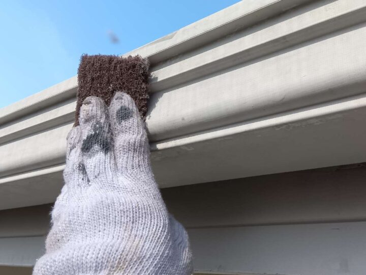 紫外線による影響から、塗料の劣化を示すチョーキングが発生しております。しっかりと高圧洗浄で汚れを落とし、塗装をする必要があります。 -