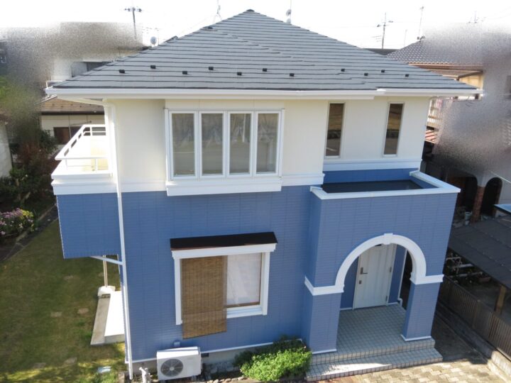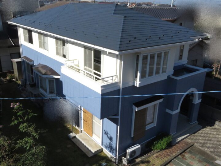 | 使用材料 | 屋根塗装:ジャパンカーボライン スーパームキコートルーフ カラー:9111 カーボングレー 外壁塗装:ジャパンカーボライン スーパームキコート カラー:8215 スレートブルー/ 8091 ブロークンホワイト |