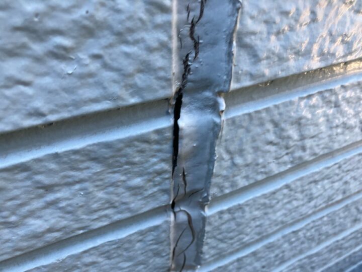 シーリングの劣化が進行しております。今回のタイミングで打ち替えをすることで雨水の浸入を阻止し、お家を長持ちさせることができます。 -