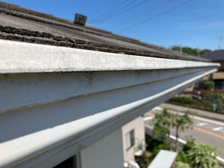 雨樋の褪色が見受けられます。今回、外壁と併せて塗装をすることで、お家を長持ちさせることができます。