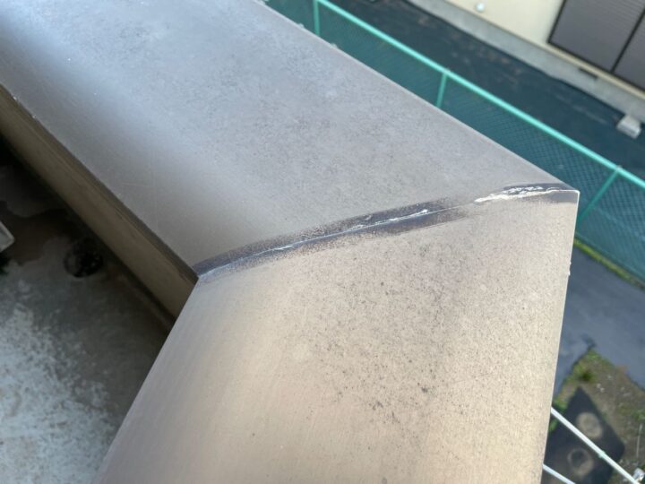 バルコニー笠木の繋ぎ目のシーリングが劣化しております。きちんと補修することで雨水の侵入を阻止し、お家を長持ちさせることができます。