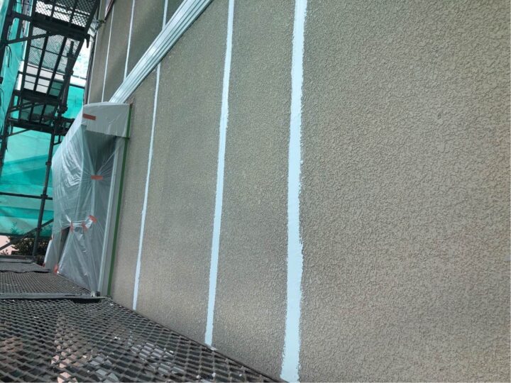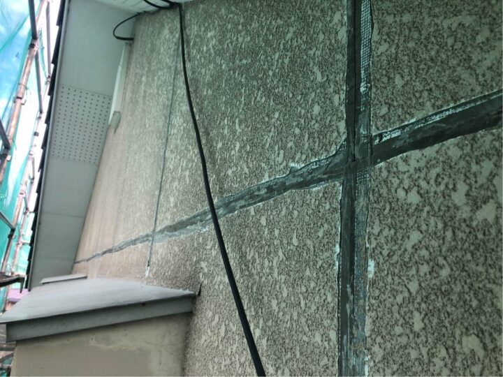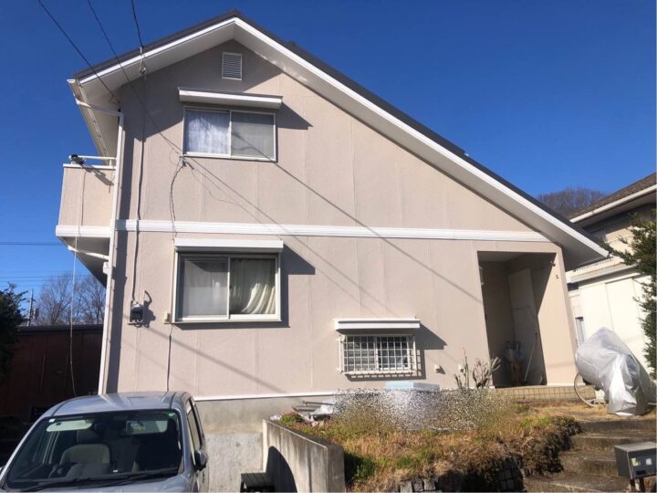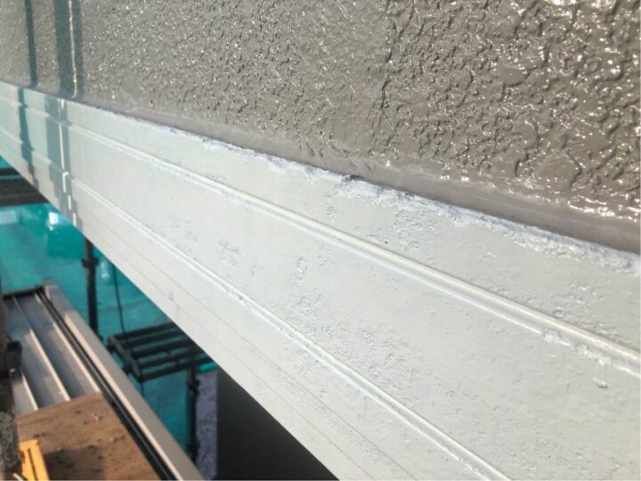 既存外壁材は窯業サイディングです。セメント・石膏などを主成分にし、一般住宅でも最も使用されている外壁材で基材に吸水性があるのが特徴です。塗装としては、吹き付けの仕上げによって立体的な凹凸を付ける仕上げになっております。 -