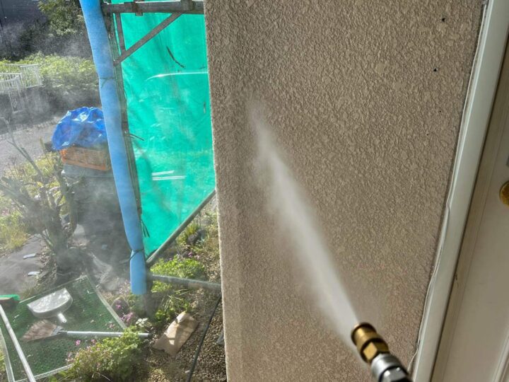 紫外線による影響から、塗料の劣化を示すチョーキングが発生しております。しっかりと高圧洗浄で汚れを落とし、塗装をする必要があります。 -