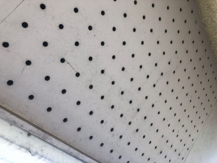 軒天部分にカビが見受けられます。今回、防カビ成分の入った軒天専用塗料を塗布することで素材を長持ちさせることができます。 -