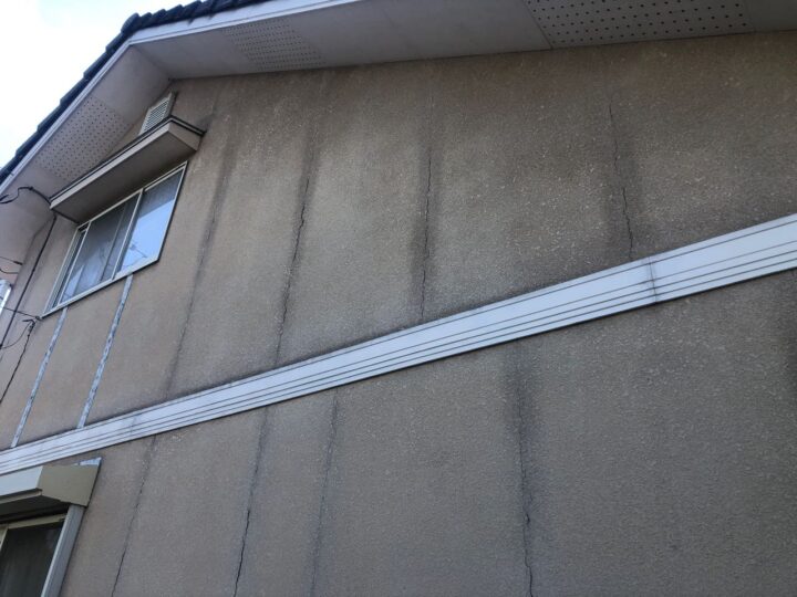 既存外壁材は窯業サイディングです。セメント・石膏などを主成分にし、一般住宅でも最も使用されている外壁材で基材に吸水性があるのが特徴です。塗装としては、吹き付けの仕上げによって立体的な凹凸を付ける仕上げになっております。 -