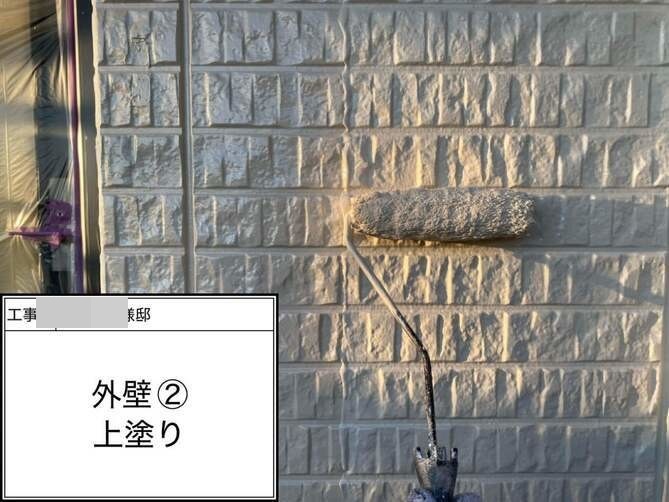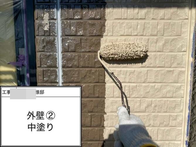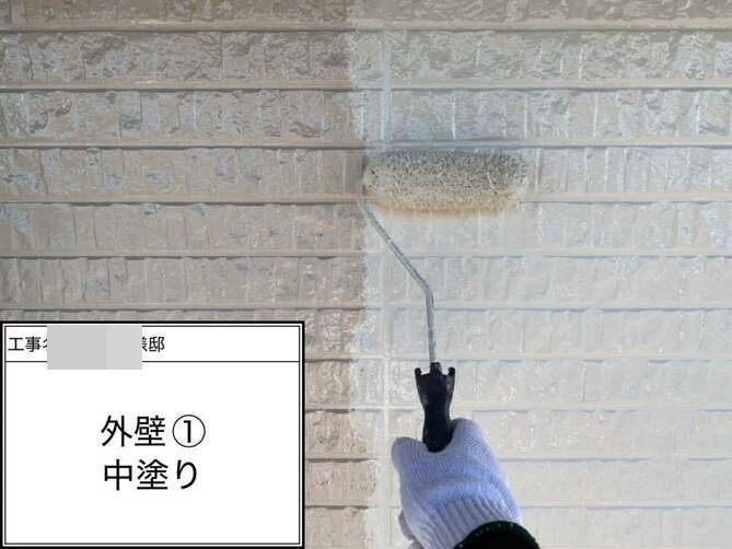 外壁の中塗りを行っています。 -