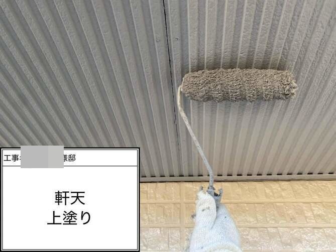 軒天の上塗りを行い完了です。 -
