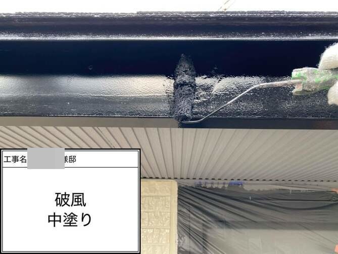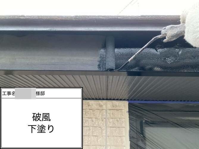 破風の下塗りを行っています。 -