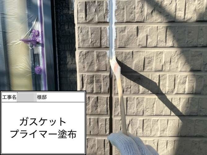 外壁目地はガスケット仕様になっております。塗装する際は可塑剤移行防止のため、専用プライマーを塗布する必要がございます。