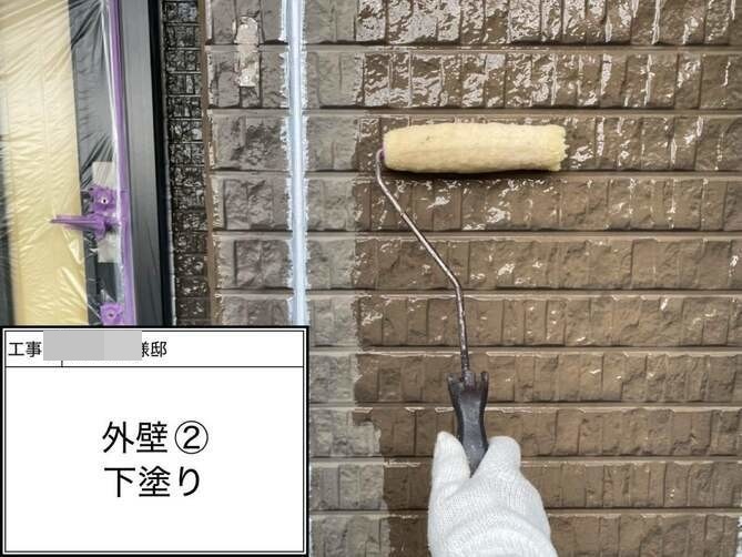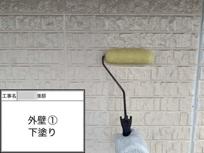 外壁の下塗りを行っています。 -