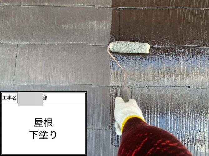 屋根の下塗りを行っています。 -