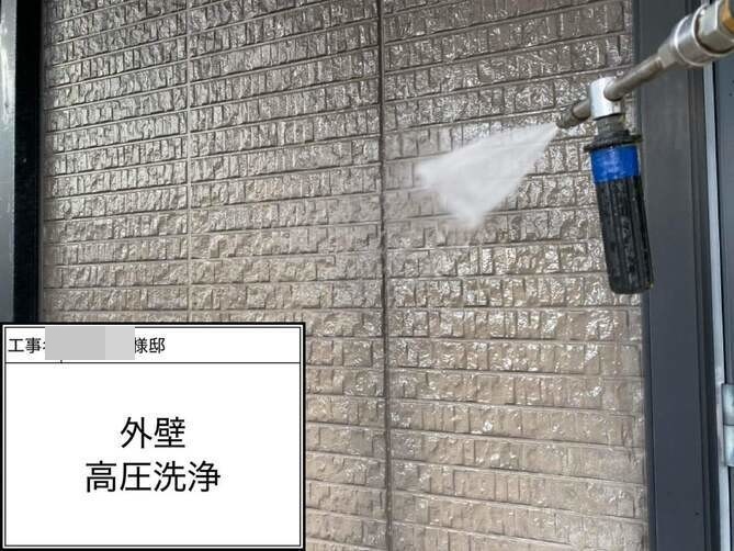 外壁の洗浄作業を行っています。 -