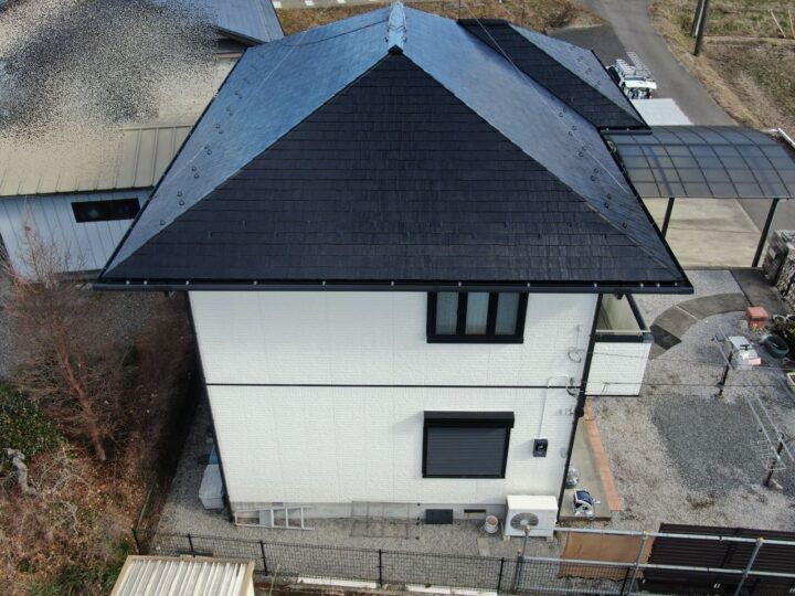 | 使用材料 | 屋根塗装:ジャパンカーボライン スーパームキコートルーフ カラー:9119 トゥルーブラック 外壁塗装:ジャパンカーボライン スーパームキコート カラー:8091 ブロークンホワイト/8084 カラーボンドメリーノ |