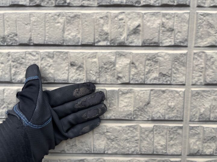 紫外線による影響から、塗料の劣化を示すチョーキングが発生しております。しっかりと高圧洗浄で汚れを落とし、塗装をする必要があります。 -