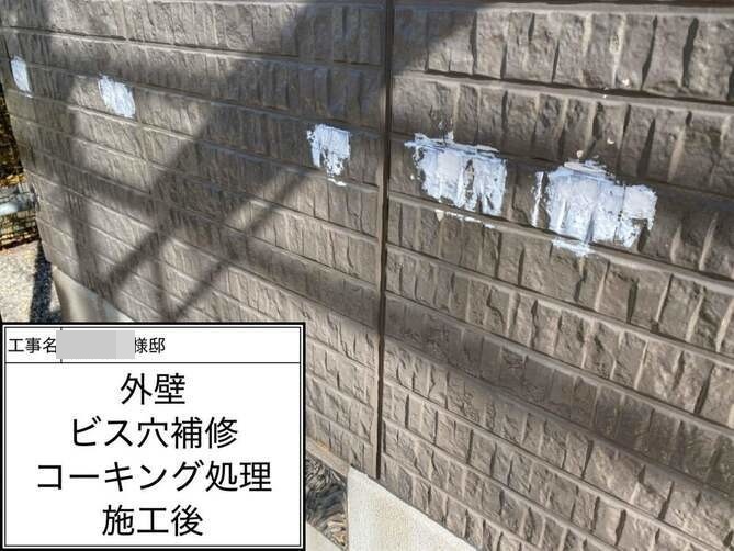 外壁の穴埋めを行っています。 -