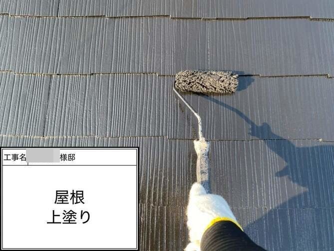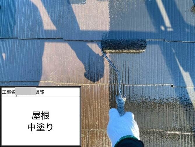 屋根の中塗りを行っています。 -