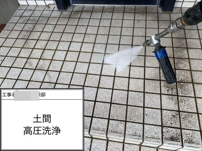土間の洗浄作業を行っています。 -