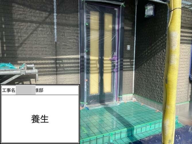 ビニルの養生を行っています。 -