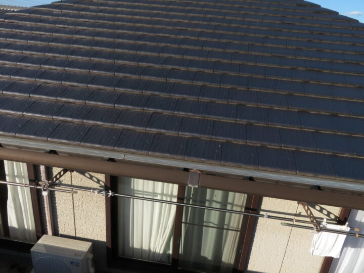 既存屋根材は陶器瓦です。ガラス質の釉薬を施し焼成して作られているため、退色しにくいのが特徴です。 -