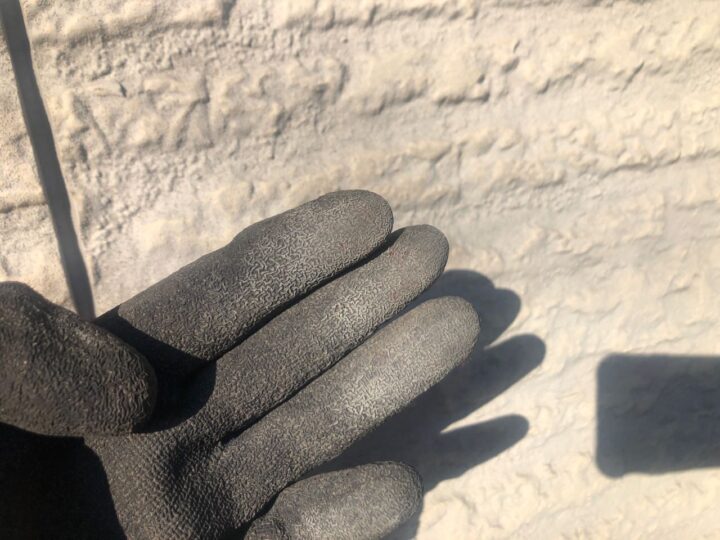 紫外線による影響から、塗料の劣化を示すチョーキングが発生しております。しっかりと高圧洗浄で汚れを落とし、塗装をする必要があります。 -