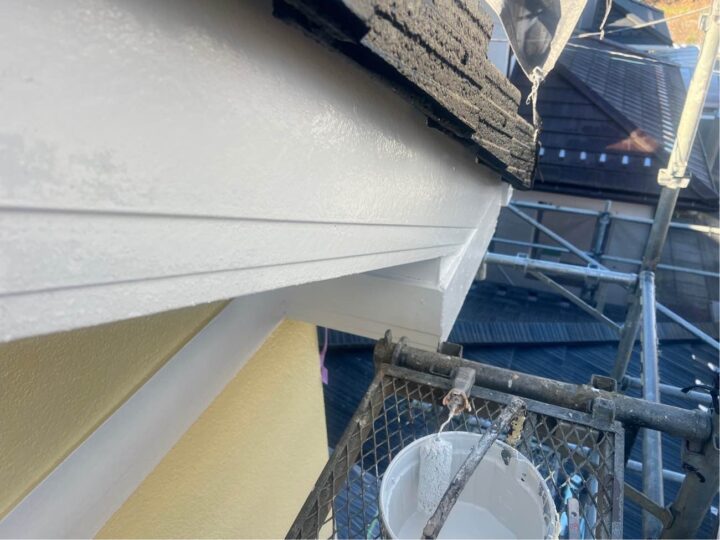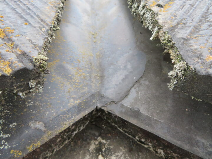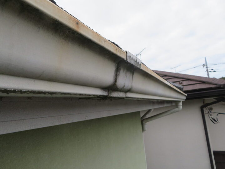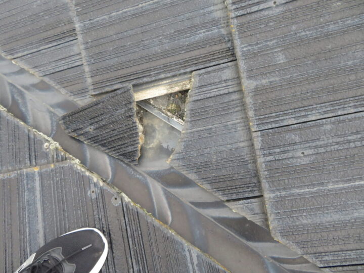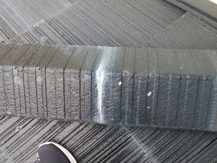 前回塗膜が剥がれていますので、しっかりとケレンを行い、下塗り処理をしてからの塗装が必要です。谷板金は雨水が集まる箇所になるので、穴が空きますと雨漏りの原因になります。 -