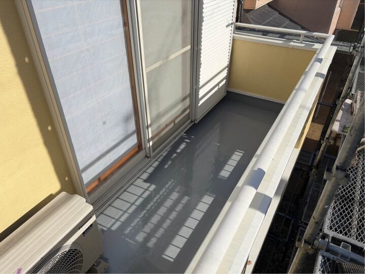 ベランダはFRP防水です。際立った劣化は確認出来ませんでしたので保護塗装のみで問題ないと判断します。