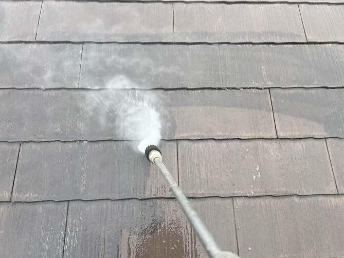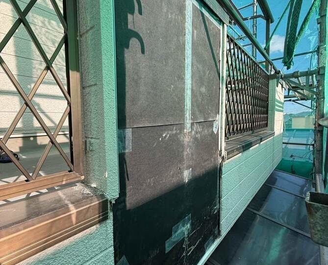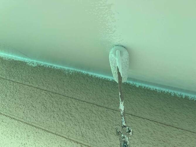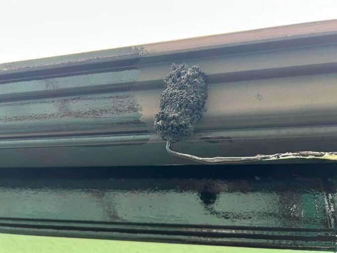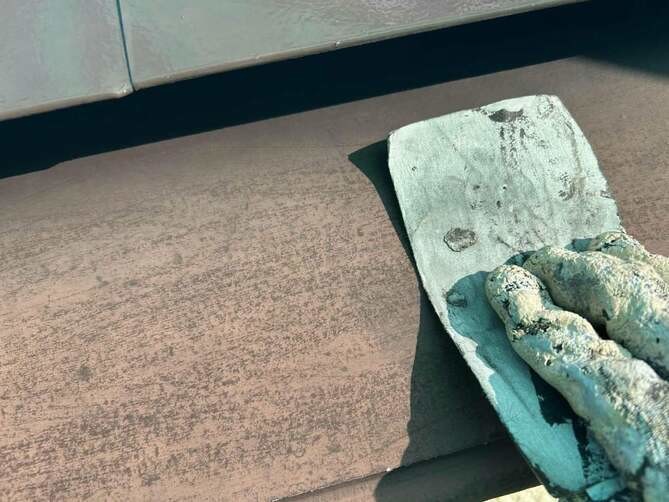 紫外線による影響から、塗料の劣化を示すチョーキングが発生しております。しっかりと高圧洗浄で汚れを落とし、塗装をする必要があります。 -