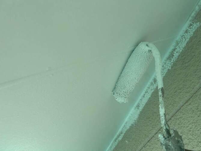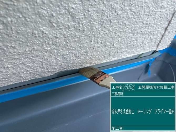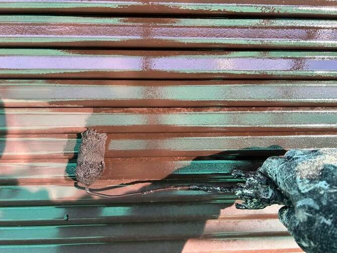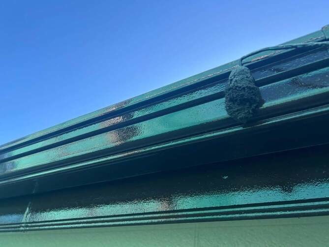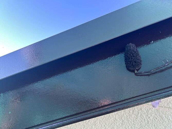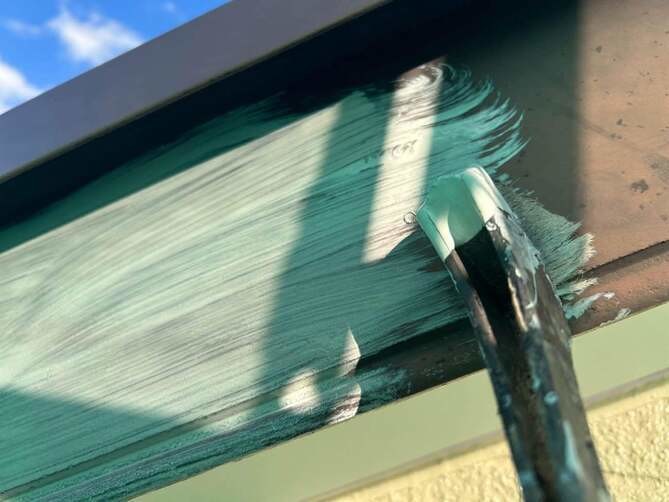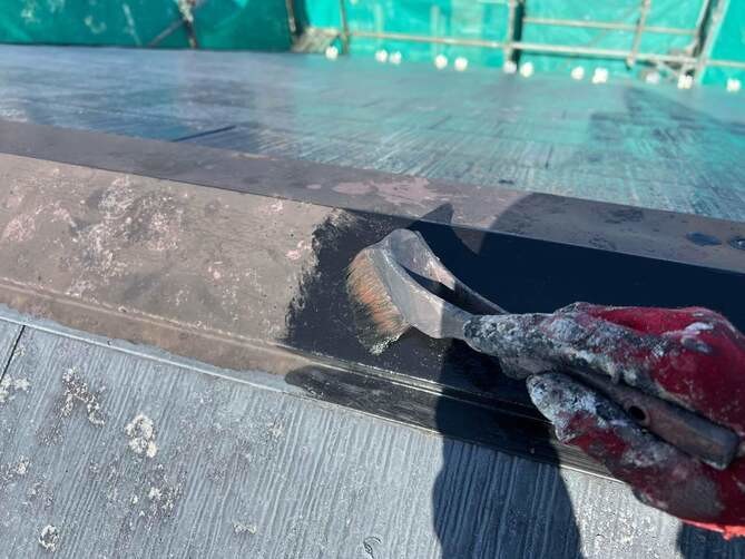 屋根板金部の下塗り(サビ止め)を行っています。 -